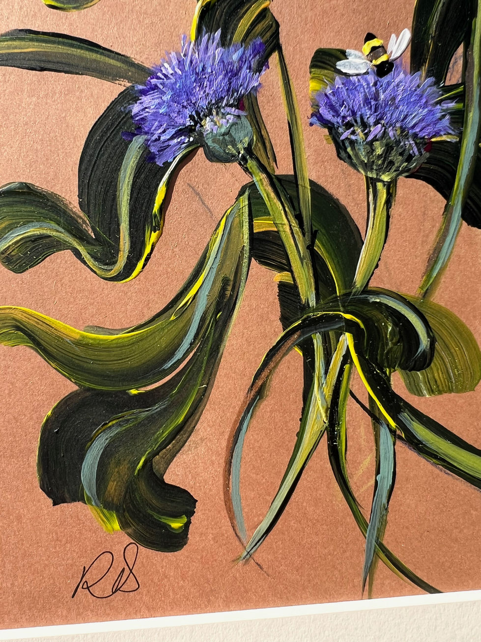 Painted on light brown card and complemented by a vanilla mount, the materials add warmth and texture to the artwork’s refined composition. The piece is A4, mounted to 30x40cm, and includes a signed certificate of authenticity.
