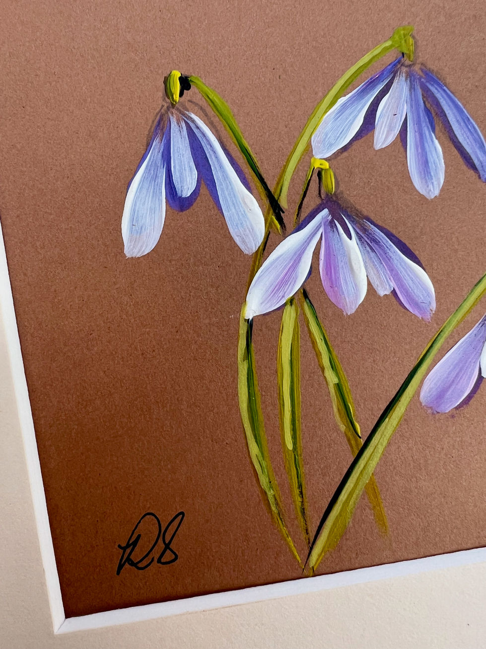 From the Lone blossoms collection, Snowdrop in Silence is hand-painted with premium acrylic paints, inspired by the first snowdrops of spring. It conveys atmosphere, rhythm, and presence — an elegant addition to interiors that value texture, light, and balance.